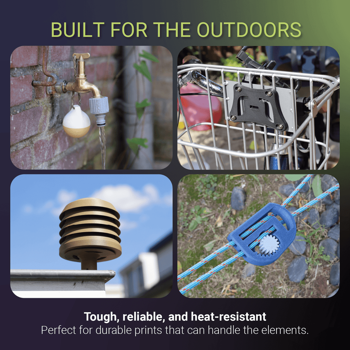 Fiberon™ ASA-CF08 combines the UV and weather resistance of ASA with 8% carbon fiber by weight, delivering high rigidity, reduced warping, and a professional matte finish.
