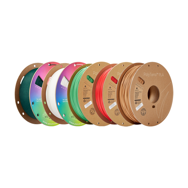 Panchroma™ is a new family of engineered polymer compounds containing PLA. The formulations are fine tuned for each color/surface finish to offer the best aesthetic quality and printability. They can be reliably printed on any FFF/FDM 3D printer under typical PLA settings.