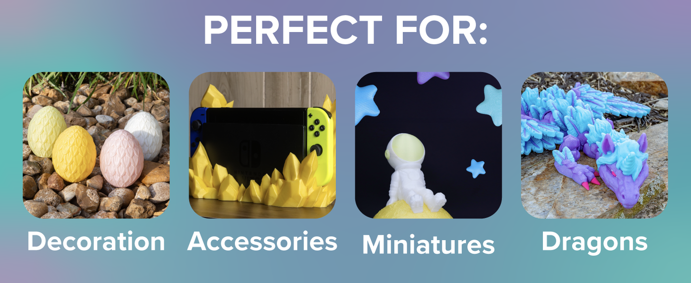 Perfect for display models, artistic creations, and decorative pieces where a soft color palette and a touch of sparkle are desired. Panchroma™ Celestial brings a dreamy, celestial quality to your 3D prints.