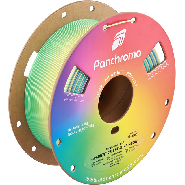 Engineered for consistent extrusion and dependable adhesion, Panchroma™ Gradient Celestial PLA prints easily across most FDM/FFF 3D printers. The filament delivers clean layers, stable gradients, and predictable performance without requiring specialized tuning.