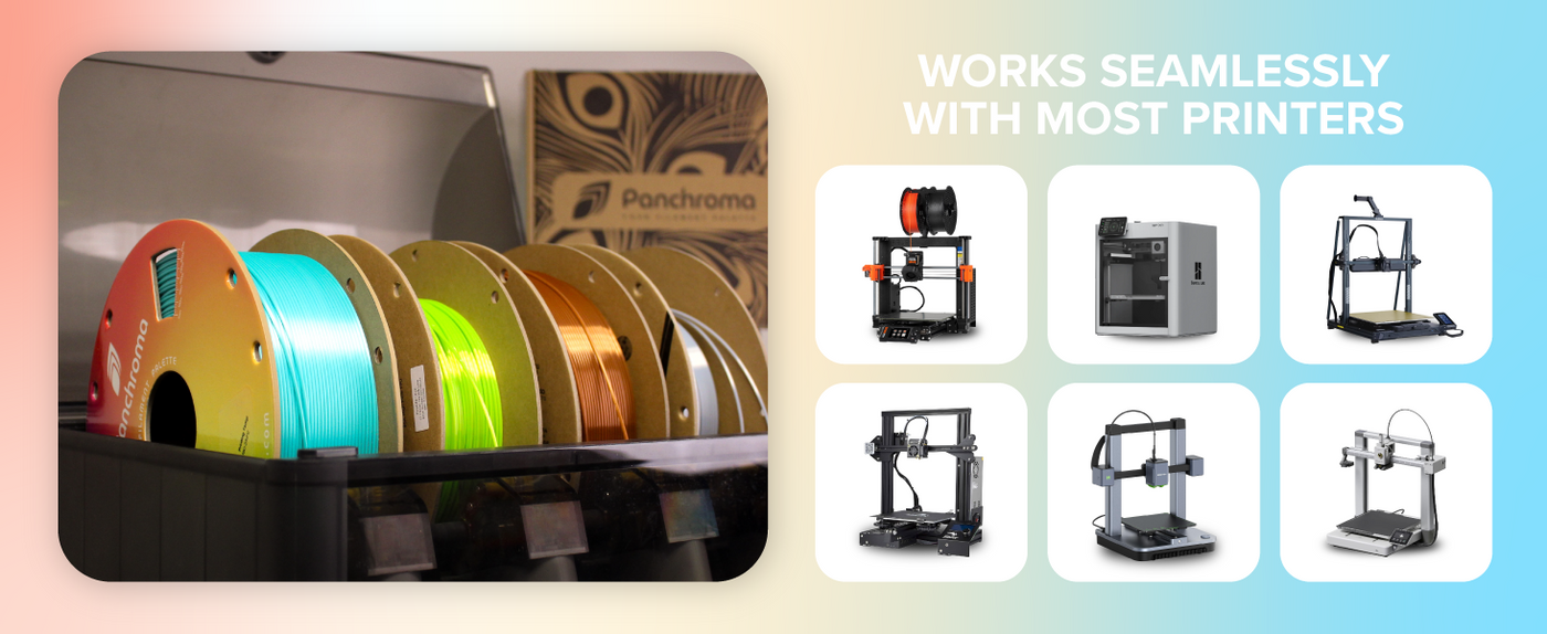 Panchroma Silk prints easily on most FDM 3D printers without requiring special hardware. Whether you're a beginner or seasoned maker, it delivers reliable adhesion and clean finishes at standard settings—right out of the box.