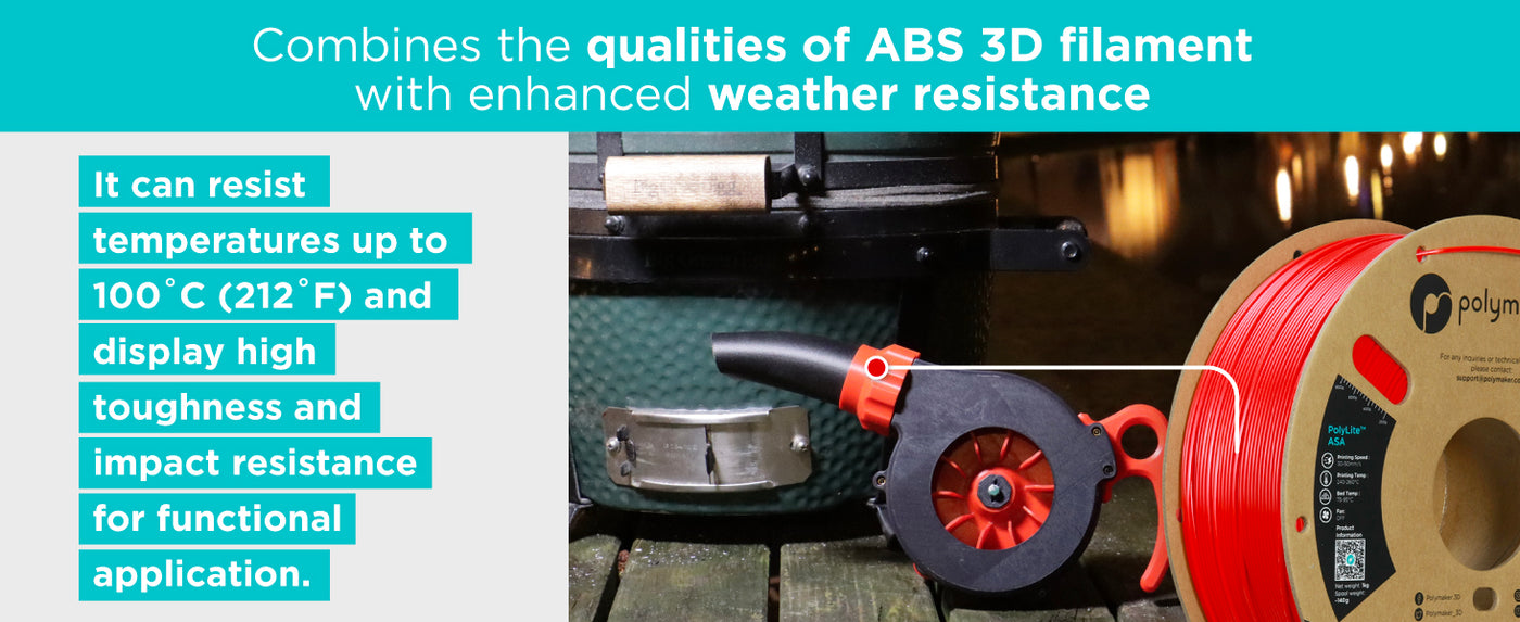 Perfect for Outdoor and Functional Parts                                                                                Choose PolyLite™ ASA for any project that demands UV resistance, weather durability, and strong mechanical properties- perfect for outdoor use and long-lasting results.
