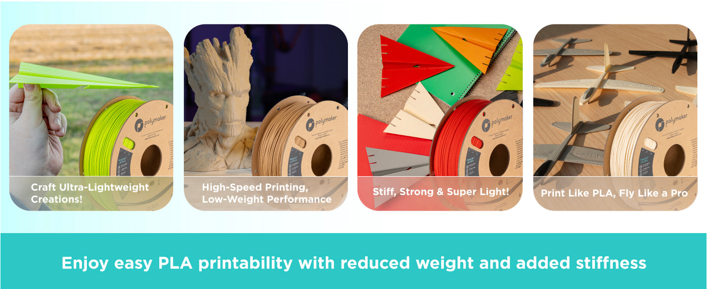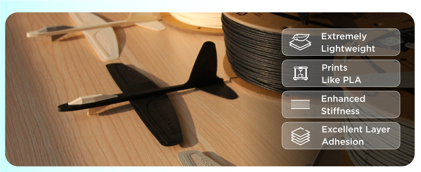 Perfect for aerospace hobbyists and anyone looking to reduce model weight, PolyLite™ LW-PLA delivers strong, ultra-light prints with impressive detail.