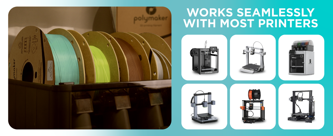 Compatible with most FDM printers, Polymaker™ PETG prints smoothly without the need for an enclosure and works seamlessly with AMS and multi-material systems for reliable filament feeding and color swaps.